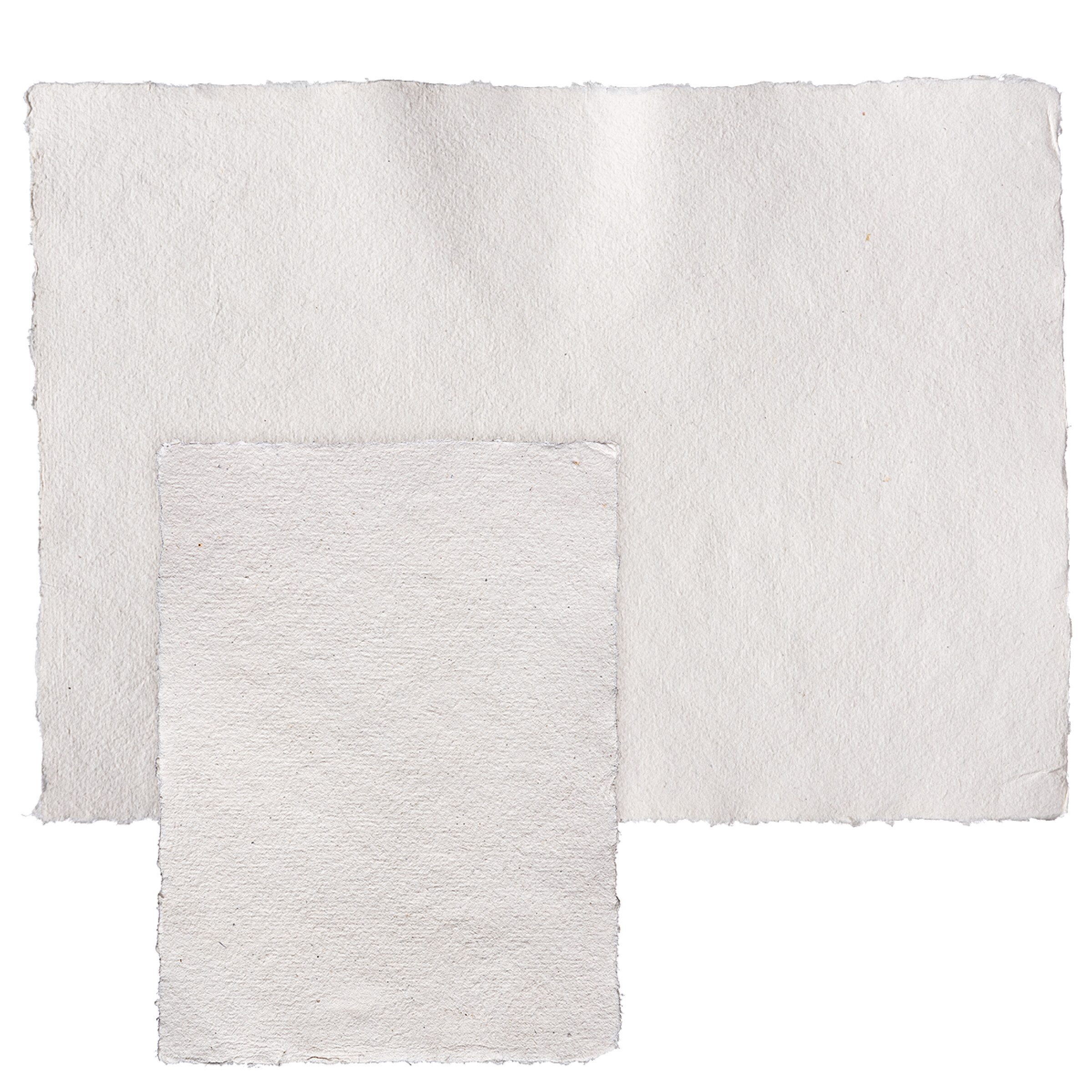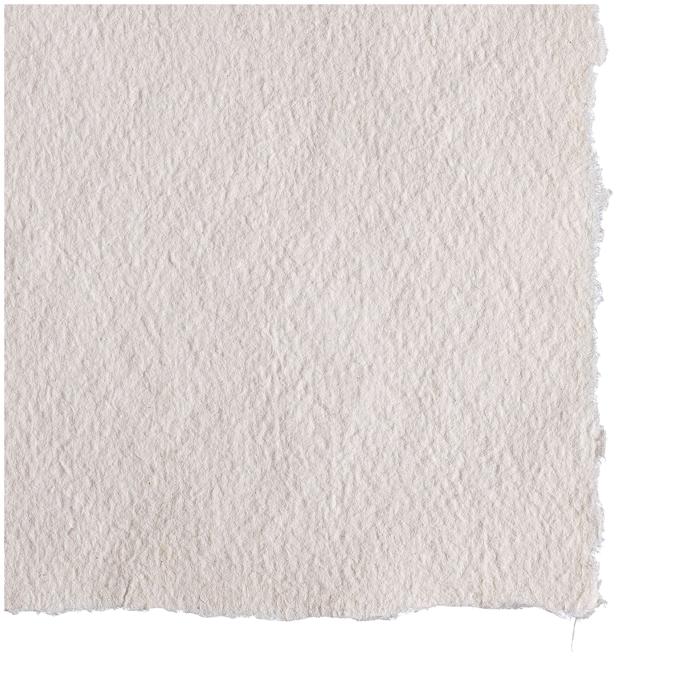 Tillverkat av 100 % bomull. Livfull, oregelbunden struktur. Råkant på 4 sidor. Tillverkade för hand, arken rivs i vått tillstånd.