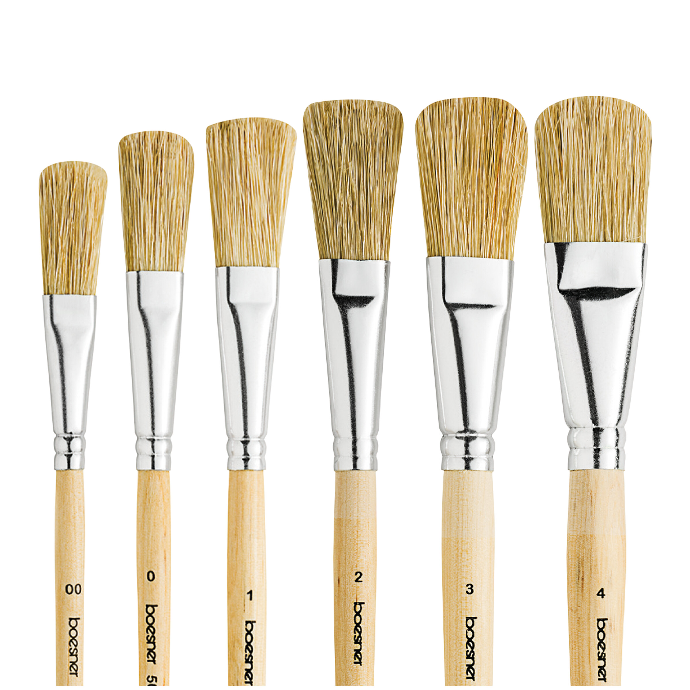 MerUniversell pensel med naturvita borst. Aluminiumhylsa, kort skaft av naturträ.