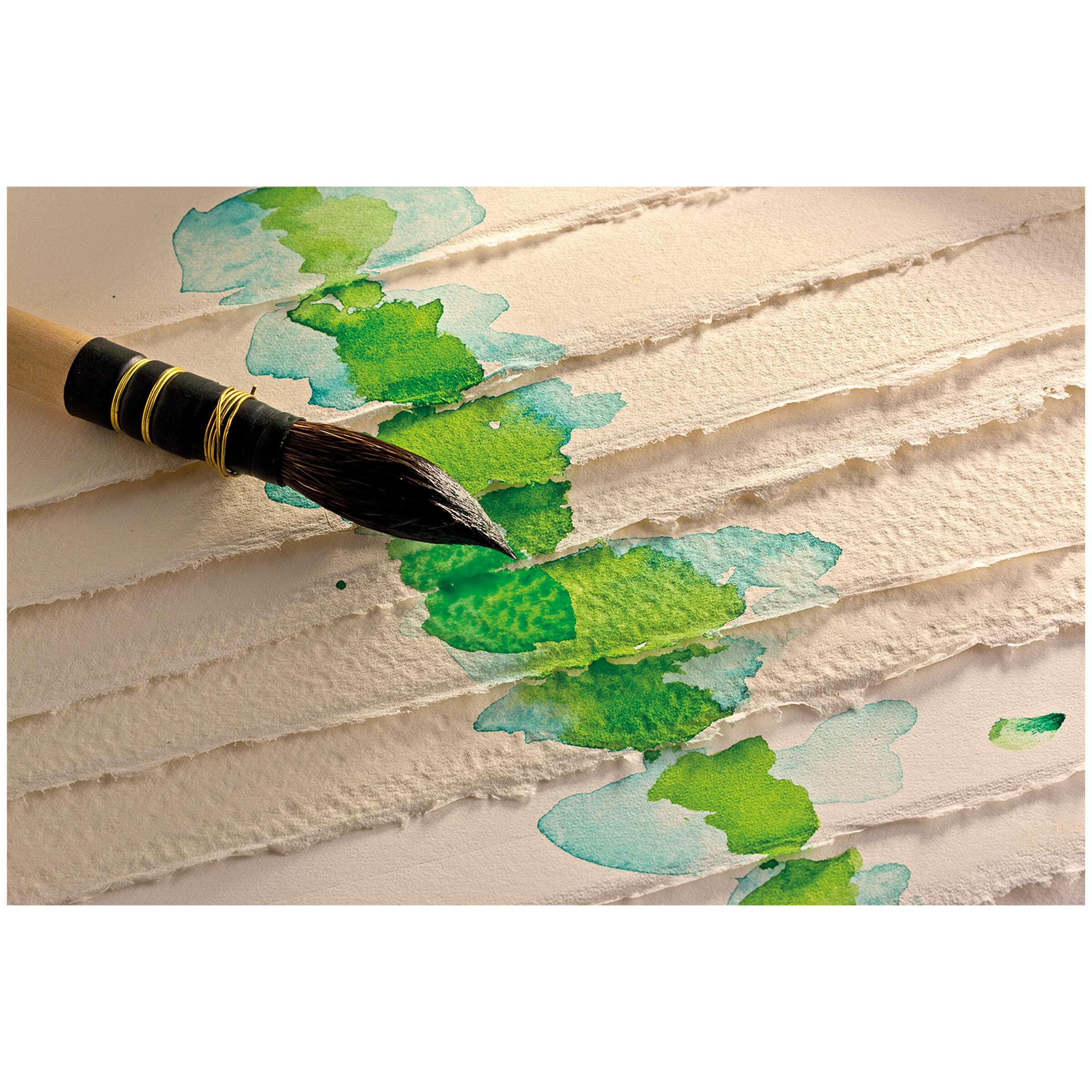 Mycket högvärdigt naturvitt papper av 100 % bomull, tvåsidiga råkanter, ingen optisk ljusförstärkare, åldersbeständigt, klor- och syrafritt, pH-neutralt och mycket god sugförmåga. Finns att beställa med 3 ytor (300 g/m²): grovkornig, finkornig och satinerad samt i 2 ytor (640 g/m²): grovkornig och finkornig och pappret är allt mindre strukturerat från grovkornigt till satinerad. Idealiskt för akvarellmåleri, gouache, akrylfärg, tusch, kolteckningar och skisser.
